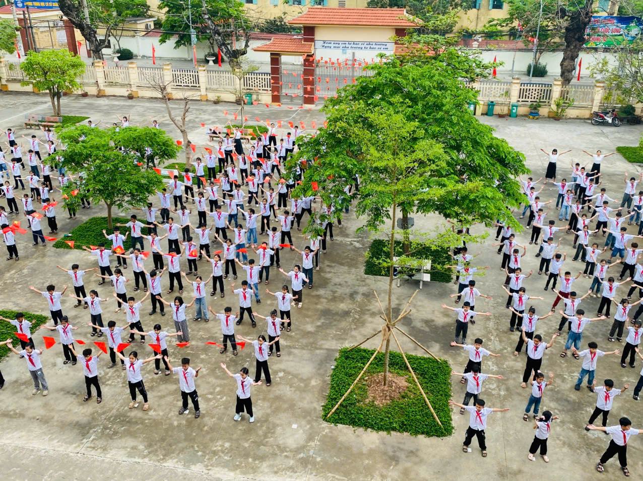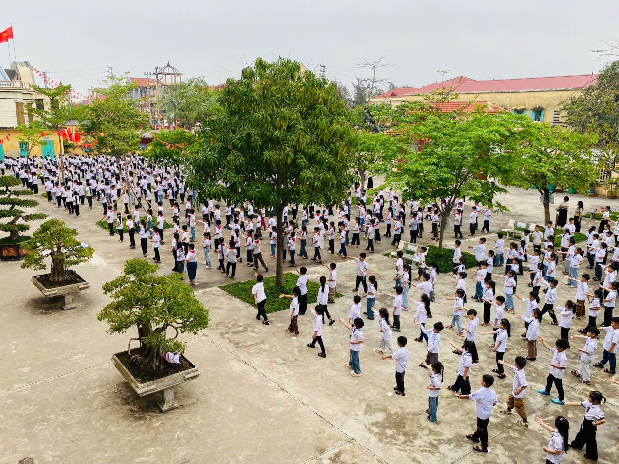 Đặc biệt, trong giờ ra chơi, sân trường trở nên rộn ràng và đầy sức sống khi cả học sinh cùng cán bộ, giáo viên đều hào hứng tham gia. Thầy và trò cùng hòa mình vào từng động tác, từng nhịp nhạc, tạo nên không khí vui tươi, gắn kết và tràn đầy năng lượng.